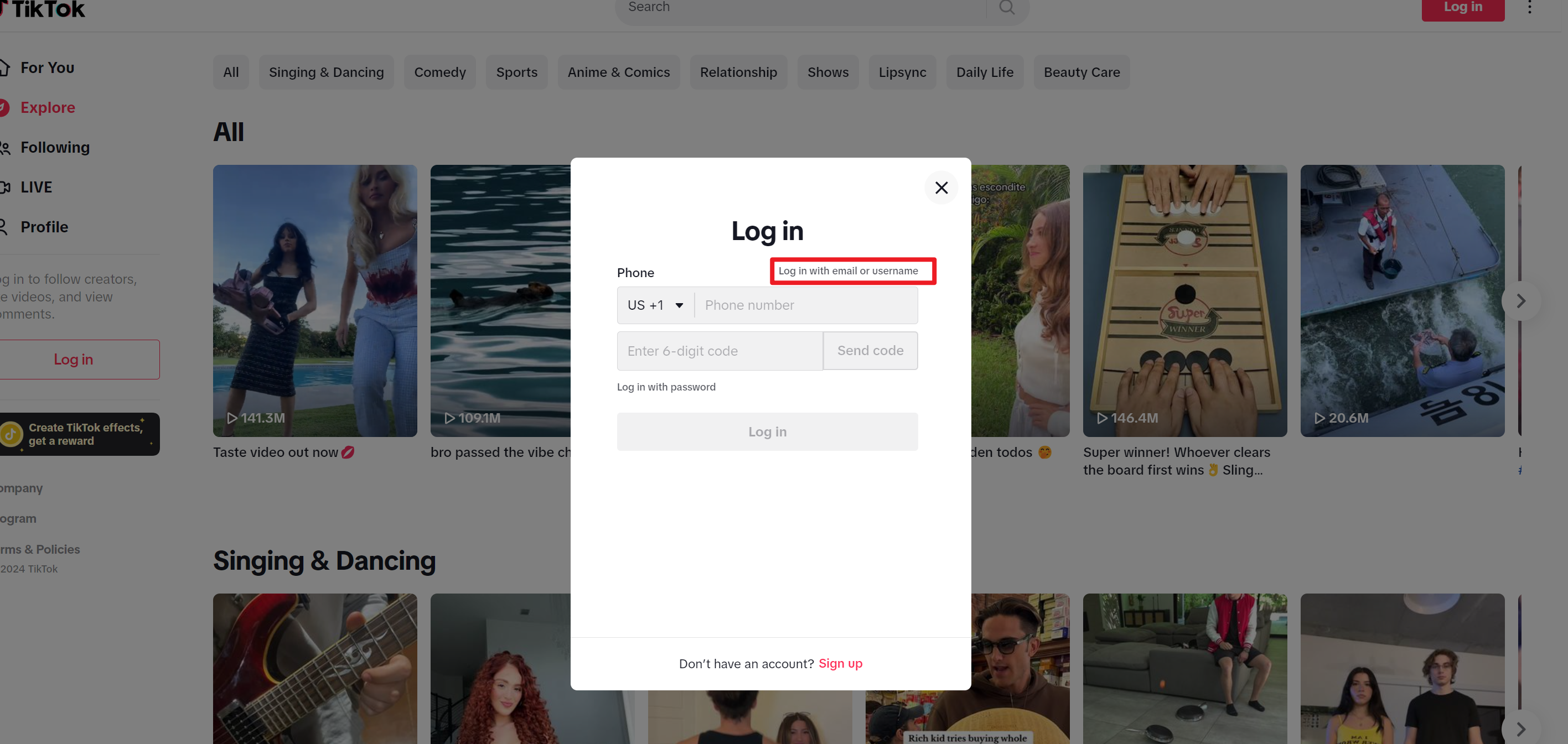 Tiktok账号密码直接登入(适用于App,浏览器网页版本)